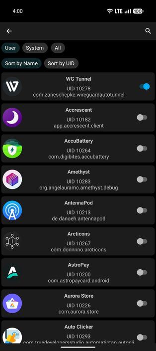 All of that is no longer necessary, since we can now leverage the "Proxied Backend" feature of WG-Tunnel, allowing us to route all connections from a firewall app (such as InviziblePRO or RethinkDNS) directly to the SOCKS5 proxy offered by WG-Tunnel, which then sends our traffic to whichever WireGuard backend we've chosen in the app. All done in the same Android profile.